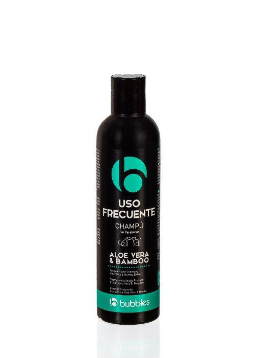 El Champú de uso frecuente para perros, con extracto de Aloe Vera & Bamboo, es perfecto para aquellas mascotas que, por cualquier circunstancia, necesiten bañarse más frecuentemente. Su fórmula a base de extractos naturales y PH equilibrado, evita las irritaciones, protege su piel y su cabello, y proporciona un efecto refrescante a nuestro mejor amigo