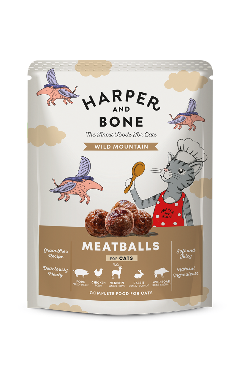 Estas albóndigas están hechas con selectos cortes de carnes de alta calidad como el jabalí, cerdo ibérico, conejo y ciervo, complementadas con vegetales frescos y nutritivos como brócoli, guisantes, zanahorias y patatas, además de guisantes y alga kelp. ¿El veredicto? Un bocado irresistible, tierno y jugoso que hará las delicias de tu gato. Estas albóndigas son cocinadas conservando todos sus jugos naturales, con una calidad para el paladar humano pero adaptadas a las necesidades nutricionales de tu gato. No solo son un manjar en sabor, sino que están repletas de proteínas y ácidos grasos omega 3 y 6, asegurando una comida no solo deliciosa sino también nutritiva. Con un nivel de palatabilidad excepcional, nuestras albóndigas Harper & Bone no son simplemente una comida, son una experiencia gastronómica que tu gato disfrutará mientras se beneficia de todos los nutrientes esenciales. Así que, si buscas una forma de alegrar a tu amigo y transformar su hora de la comida en un momento especial, prueba las albóndigas para gatos Wild Mountain de Harper & Bone.